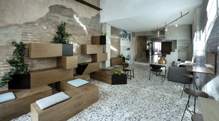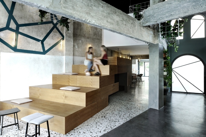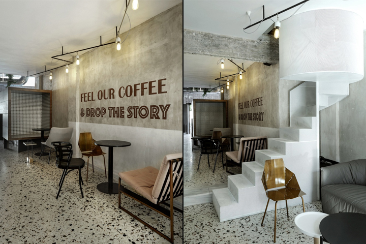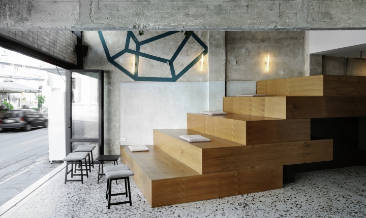 在卡瓦拉的中心,位于希腊北部的一个城市,你可以遇到这样一个休闲空间。黑色和清水混凝土、还有生态木板阶梯组成的咖啡店, 咖啡更像是一次别样的经历感受, 一个城市的行为。马赛克变成了一个互动空间沟通了解的平台和交换意见的艺术咖啡。