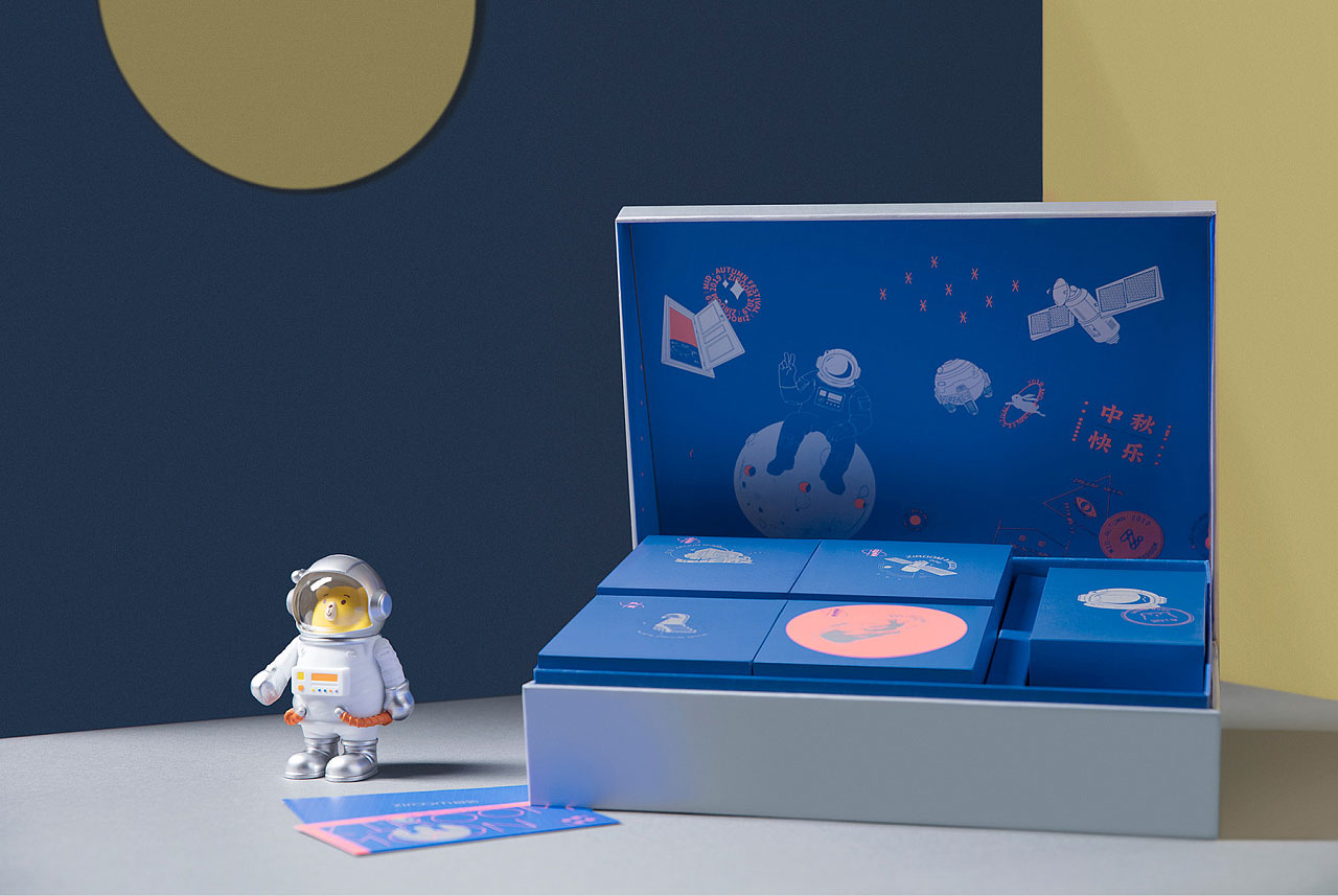 打开盒子,映入眼帘的便是身着宇航服的木木、卫星、玉兔、小行星……