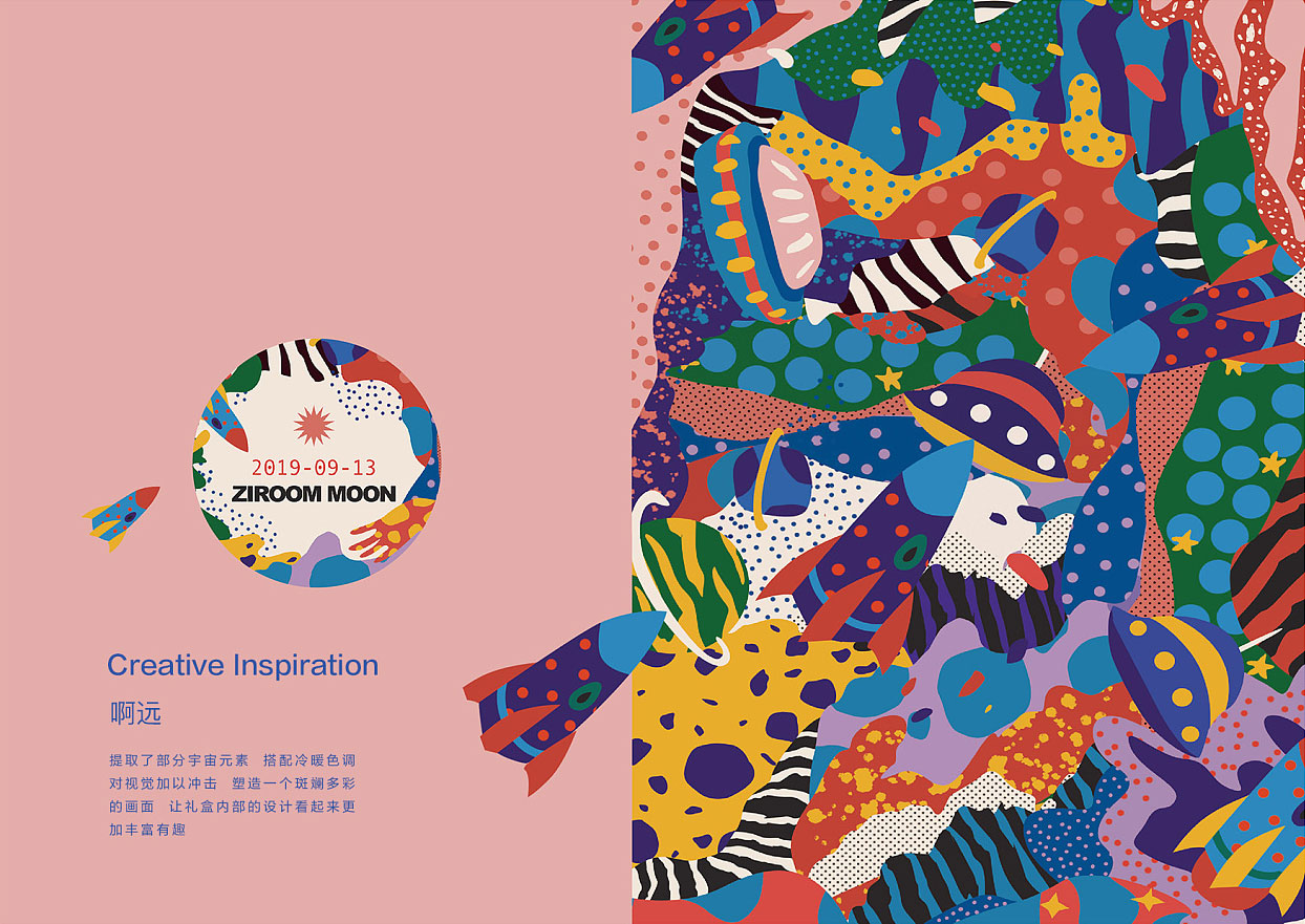 塑造一个斑斓多彩的画面,让礼盒内部的设计看起来更加丰富有趣