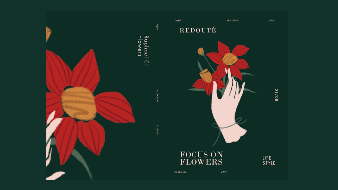 VI设计公司将专注花卉绘画事业的画家雷杜德与该品牌很好地联系起来,将人们对幸福感的追寻与花本身的含义融合表达,传达了追寻幸福的品牌态度。
