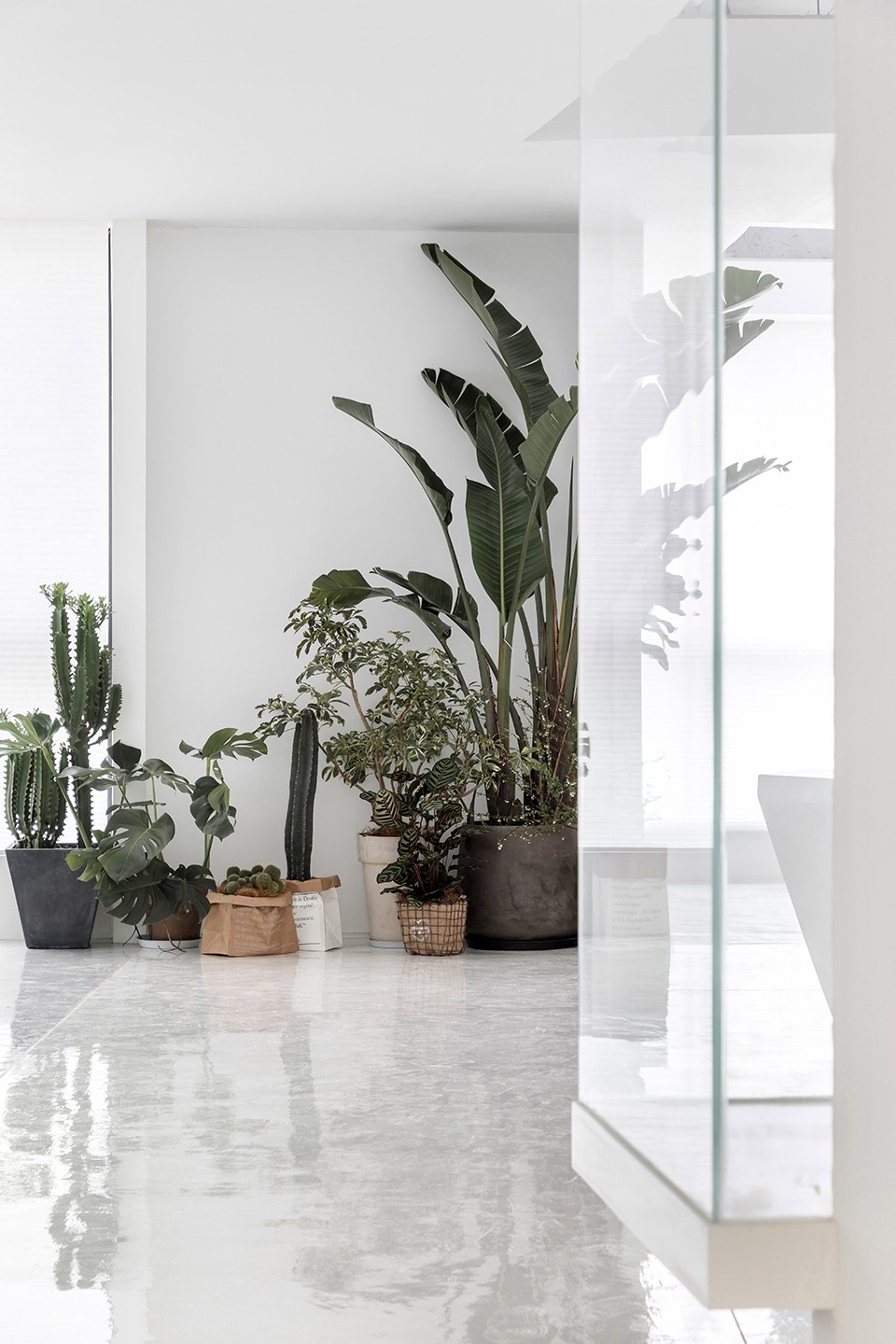 T台的概念始终在整个空间中体现,员工们穿梭在其中成为了另外一种独特的体验,磨砂的雾感玻璃仿佛是走台两边的白烟,衬托出了空间的别具一格。