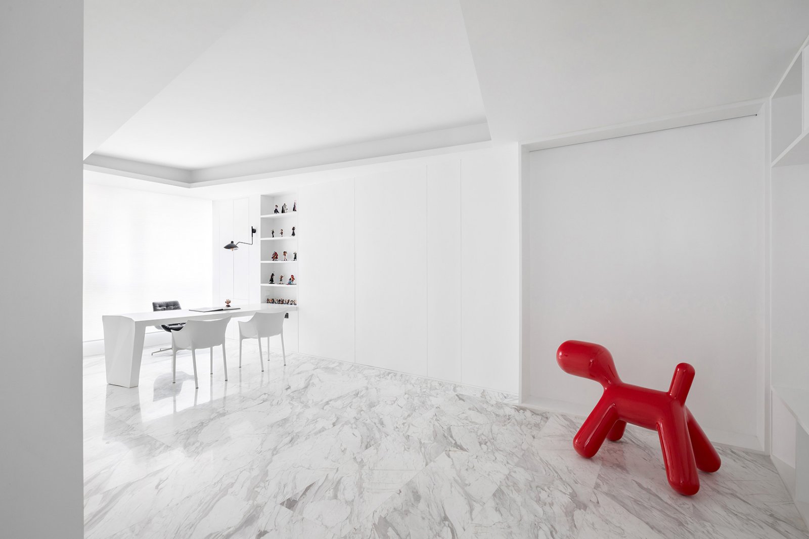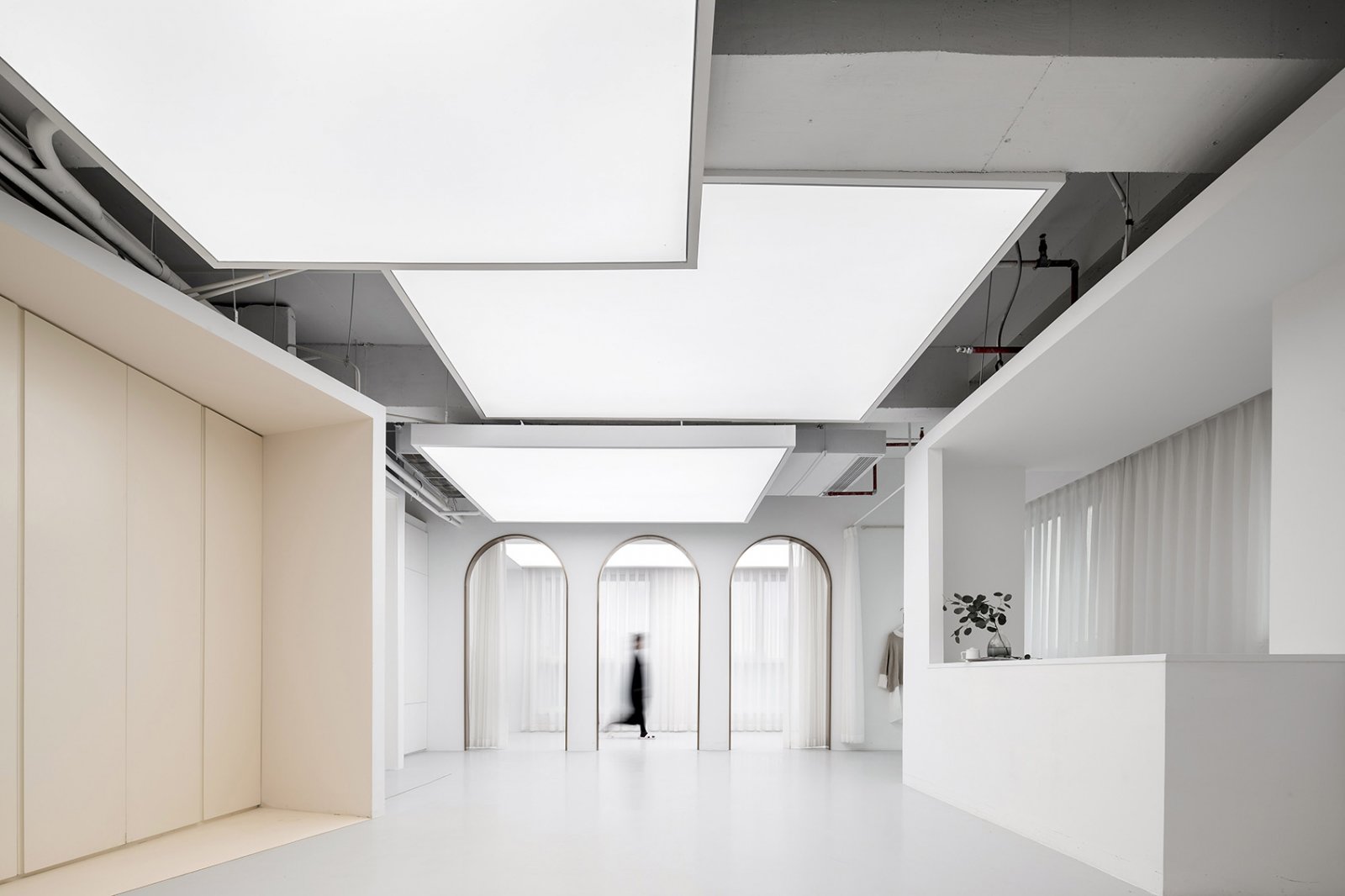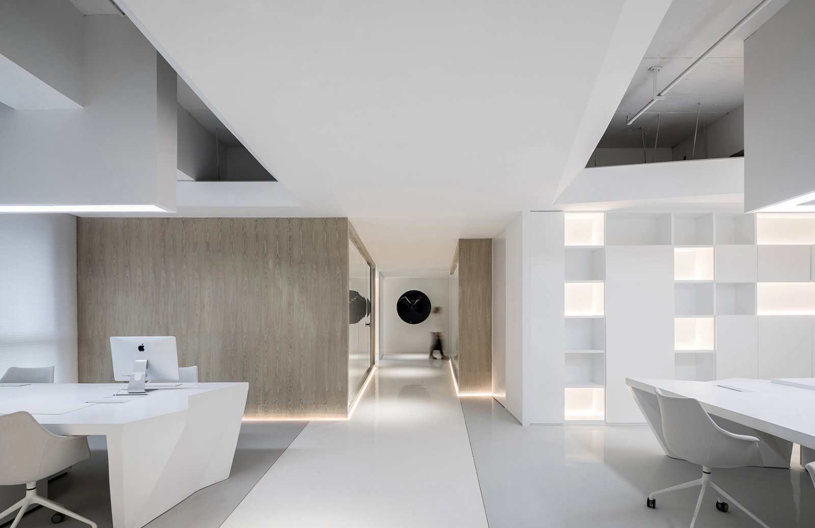 走进这间服装品牌办公室,犹如走进一间冥想的场所,空间设计公司使白色大理石与乳胶漆的材质结合碰撞,充满了各种幻想与无限可能。 整个空间的设计理念由一条白色的裙子、月光以及T台延伸而来,呈现出极简与清新的感受,与主人的实用主义理念相契合。