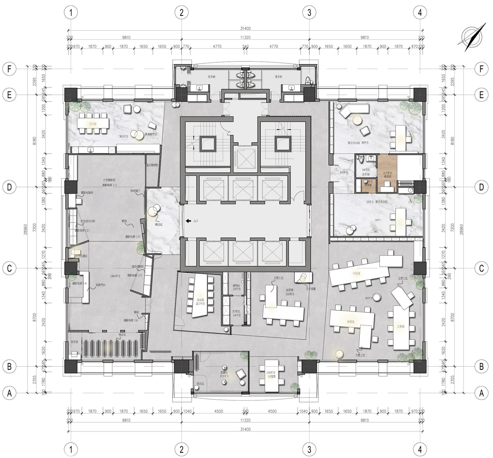 大型摄影区具有多功能性,满足了收纳衣物、拍摄、后期处理等功能。让员工的操作变得极其便利,最大化地节约了时间,提高了工作效率。