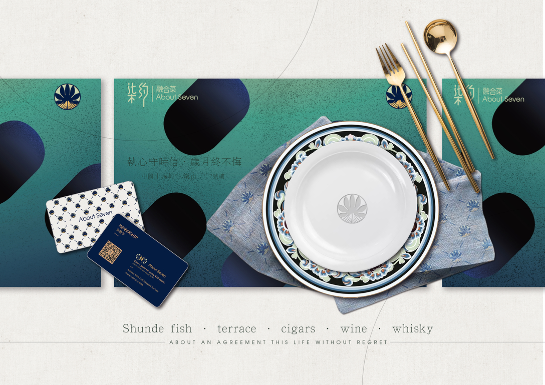 今天分享的案例来自于霈约文化,VI设计公司遵循着柒约的品牌理念,即聚焦在高端会员制的餐饮理念上,追求高端优质的服务。充分理解柒约与客户的七个约定,模糊了菜式的界限,将对约定的理解与融合菜的概念集中视觉表达,塑造高品质的品牌视觉感受。