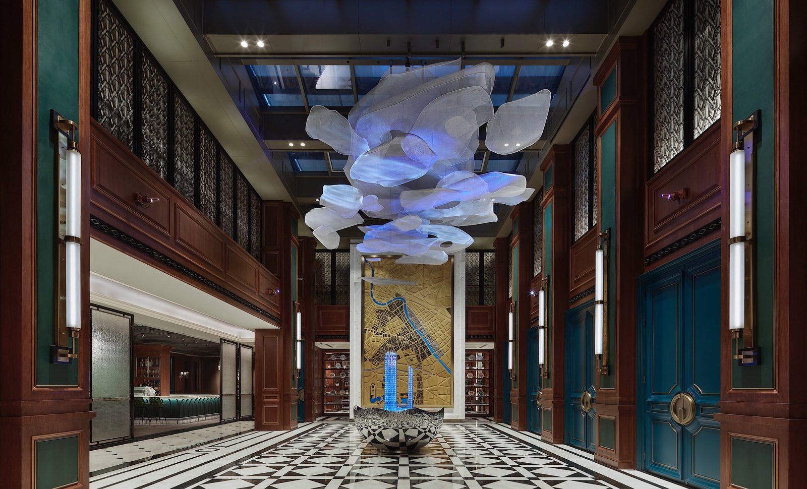 接待大厅采用上世纪20至30年代流行的装饰主义风格,线条清晰,色彩鲜明。圆形大理石装饰台面和流光溢彩的水晶灯装饰,仿佛让你置身于好莱坞老电影中的一家曼哈顿酒店大堂。