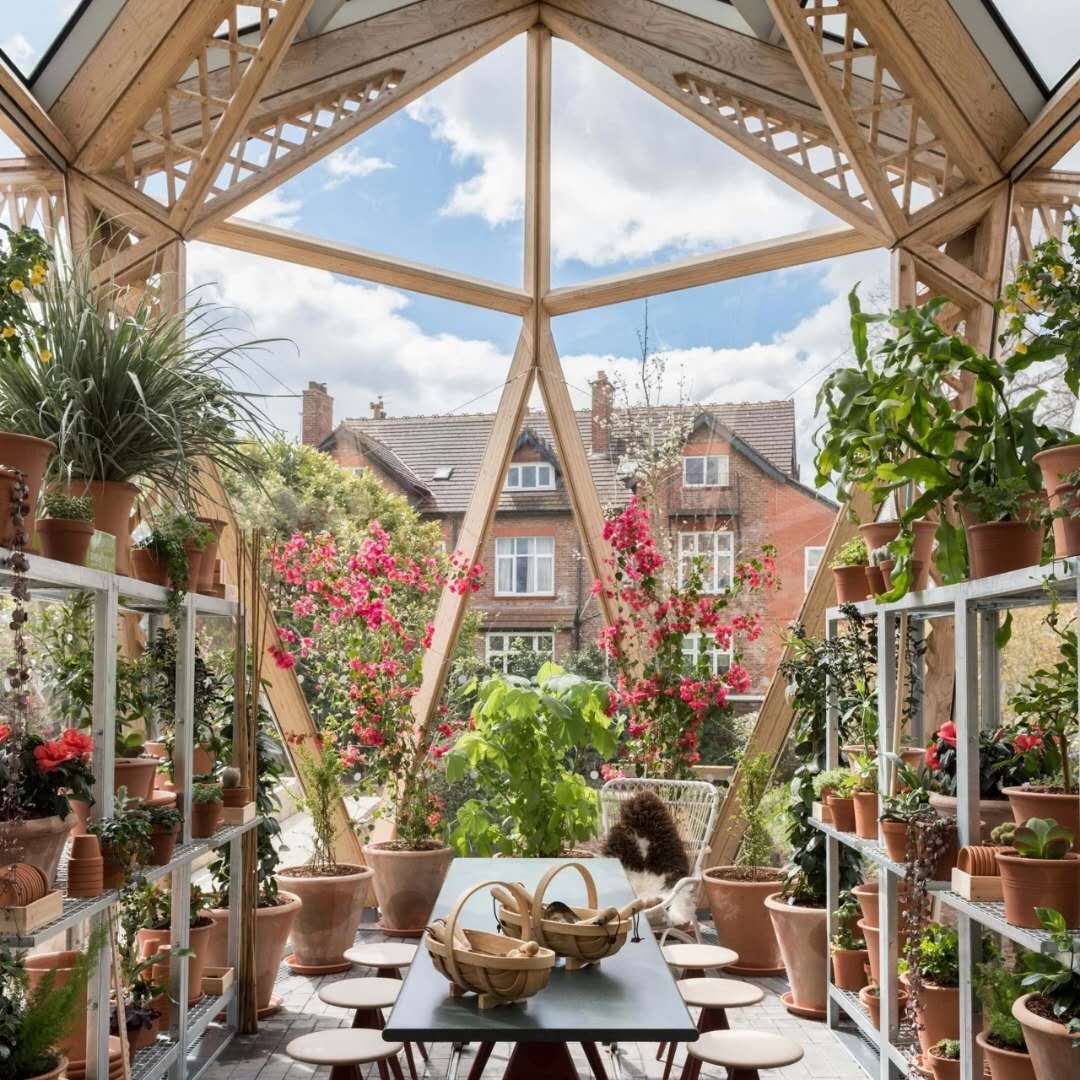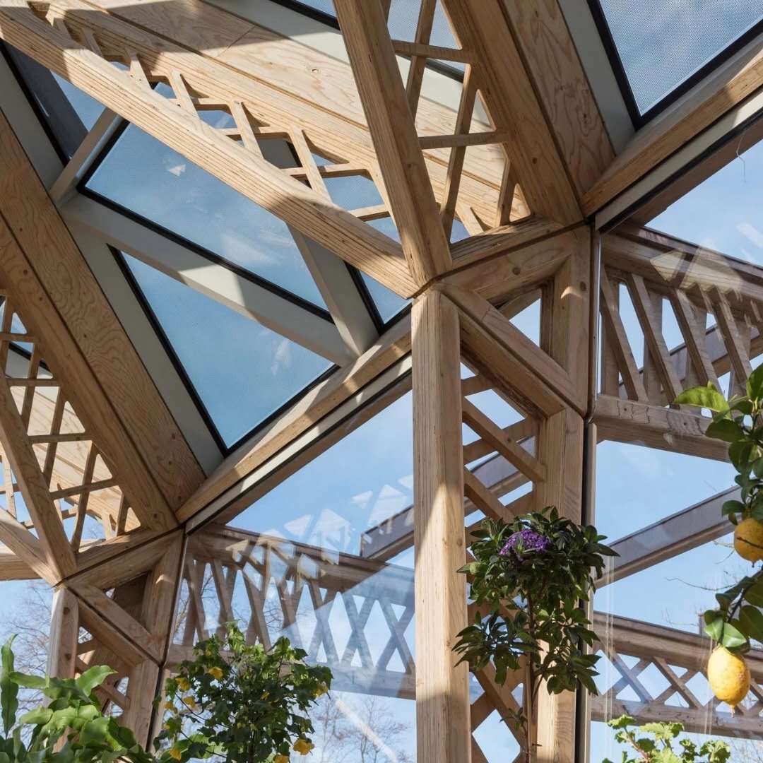 屋顶由轻型梁和木格架支撑,有机地进行区域划分。