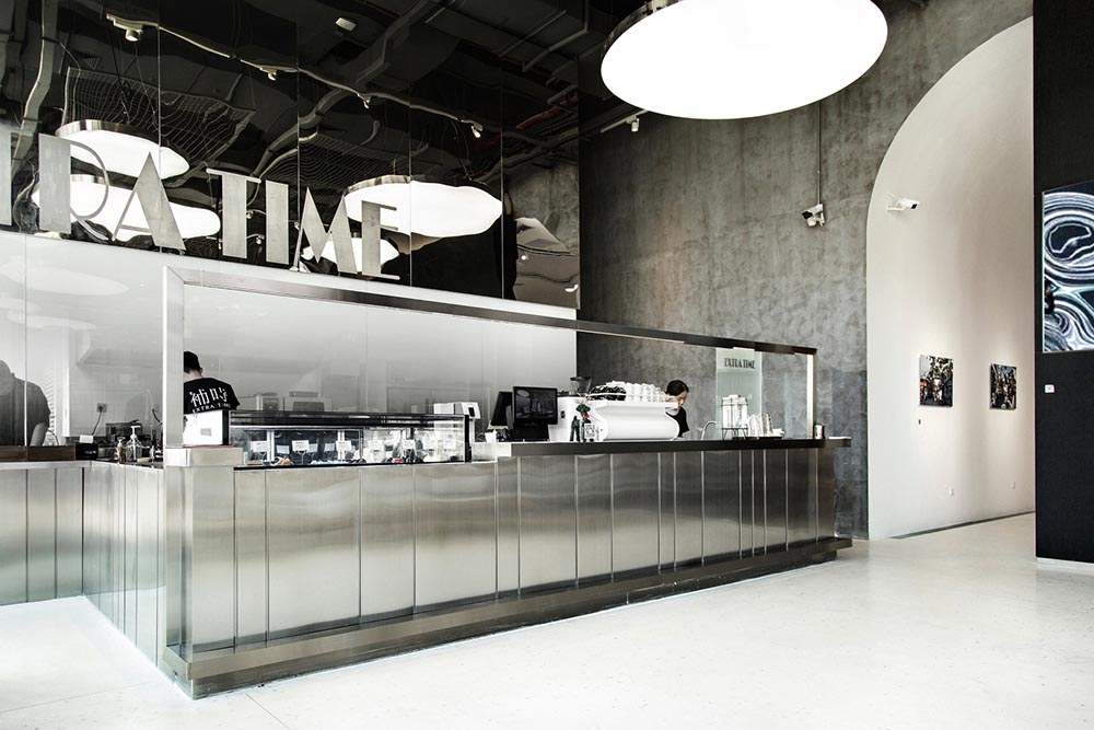 空间与业态的随时可变、设计呈现的因地制宜是補時作为“反连锁的连锁”的重要性能,空间设计公司在補時上海第一家店便充分考虑了空间的灵活性,并因现场条件及定位需求采用不同的设计语言和手法表现。设计师在補時上海常德路店,强调地下空间质朴粗矿的混凝土墙面与现代高亮反光材质的冲撞对比,引入发光膜打破地下室给人固有的阴暗沉闷感。