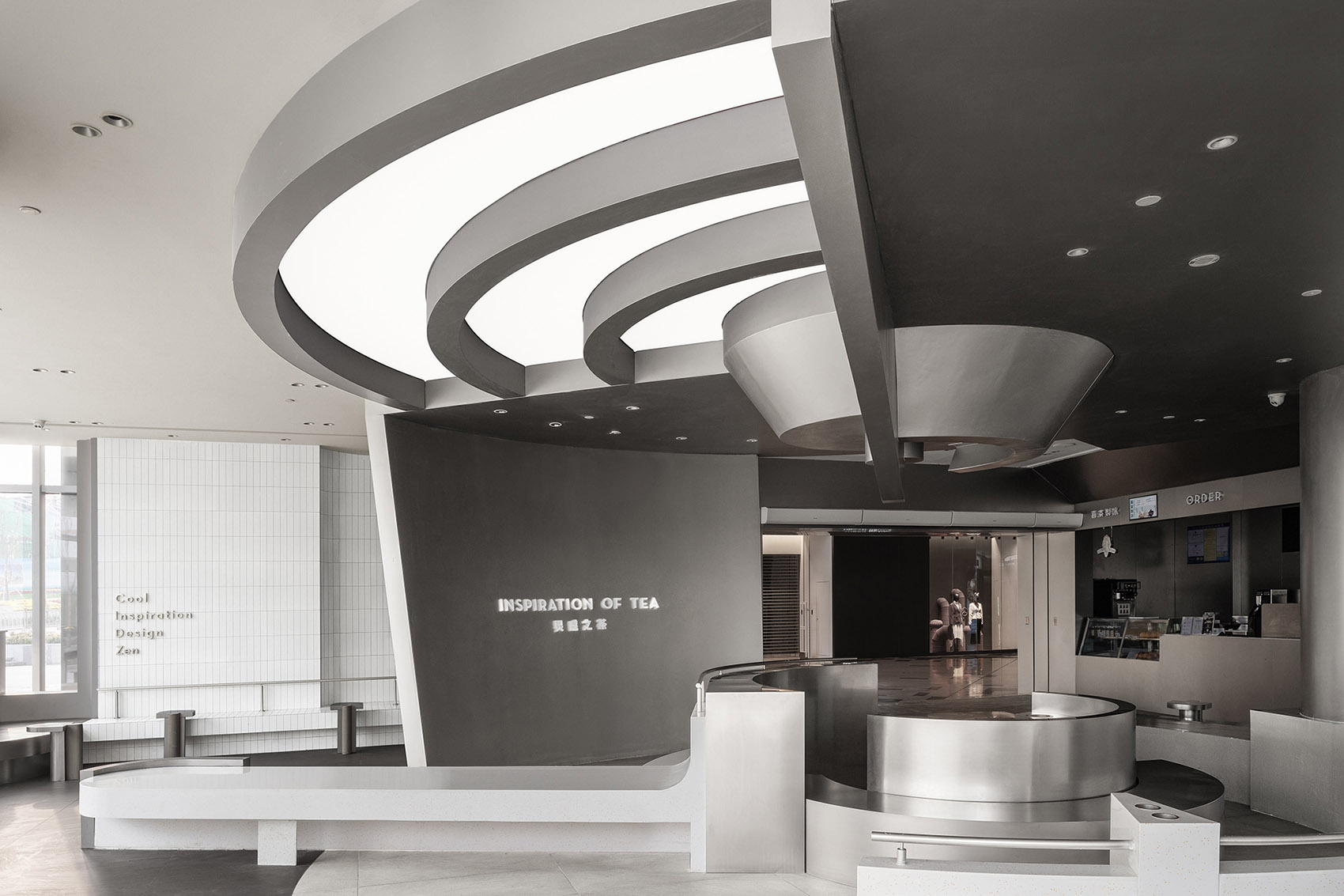 人类DNA链是一个以螺旋结构无限循环的动态体。从微观细胞到宏观世界,这样的循环构建着人类生命与精神的延续。如何用空间的形式,跳出当代艺术的范畴重新诠释这一现象,成为店面设计公司与喜茶新的研讨话题。