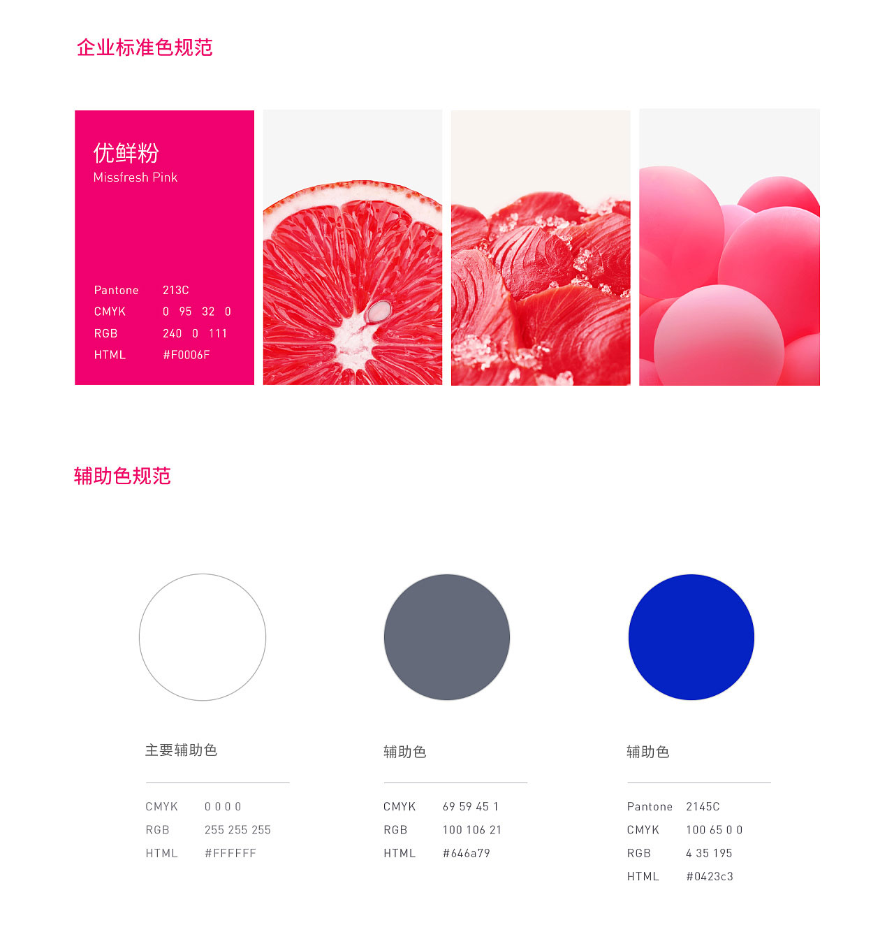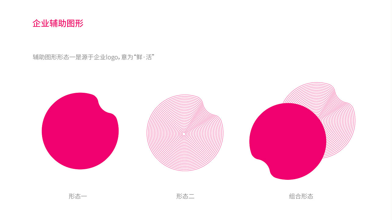 辅助图形源于企业LOGO,寓意“鲜·活”。