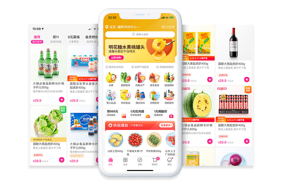 品牌LOGO的每一个汉字都有它独特的寓意:“每”字当中的两点变为闪电,寓意极速送达;“日”字以时钟的形状表现,强调时效的重要性;“鲜”字的左半边化作“仓”字,将前置仓与保鲜的关系巧妙呈现出来。