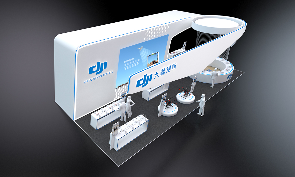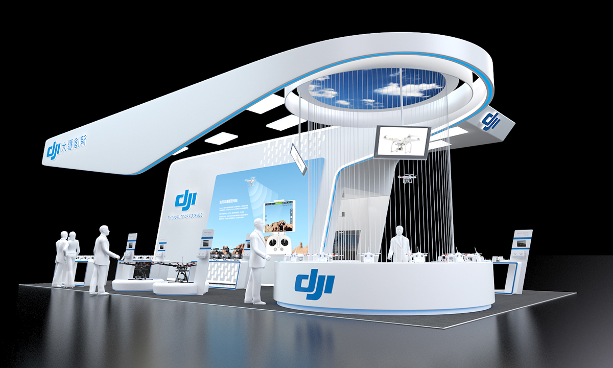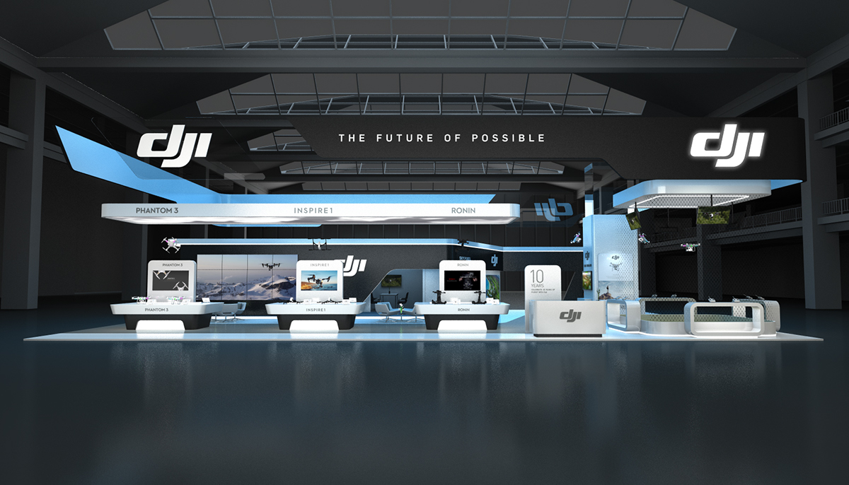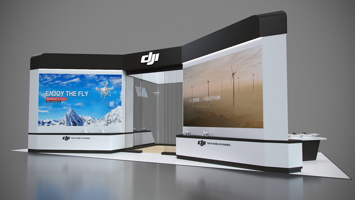 SI设计公司通常会通过店面形态、配色及道具设计来凸显行业属性和品牌理念。大疆无人机专卖店设计整体以黑白灰为主,点缀天蓝色,展现航拍产品的行业属性;道具设计浑厚沉稳,传达无人机的稳定飞行的产品特色。