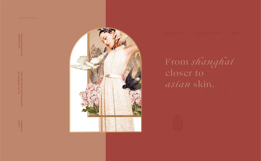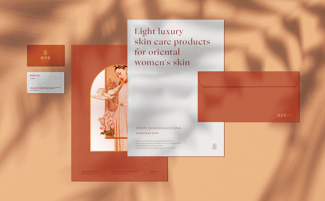 在视觉上,VI设计公司取用海派文化的独特气质,中西交融、东情西韵,希望塑造能够代表中国形象的国际品牌。品牌视觉中饱含中国海派文化的大气之美,精致、奢华、独特、交融,打破传统的中国风,同时彰显了橙芙熙独特的护肤理念:来自中国、却能面向世界!