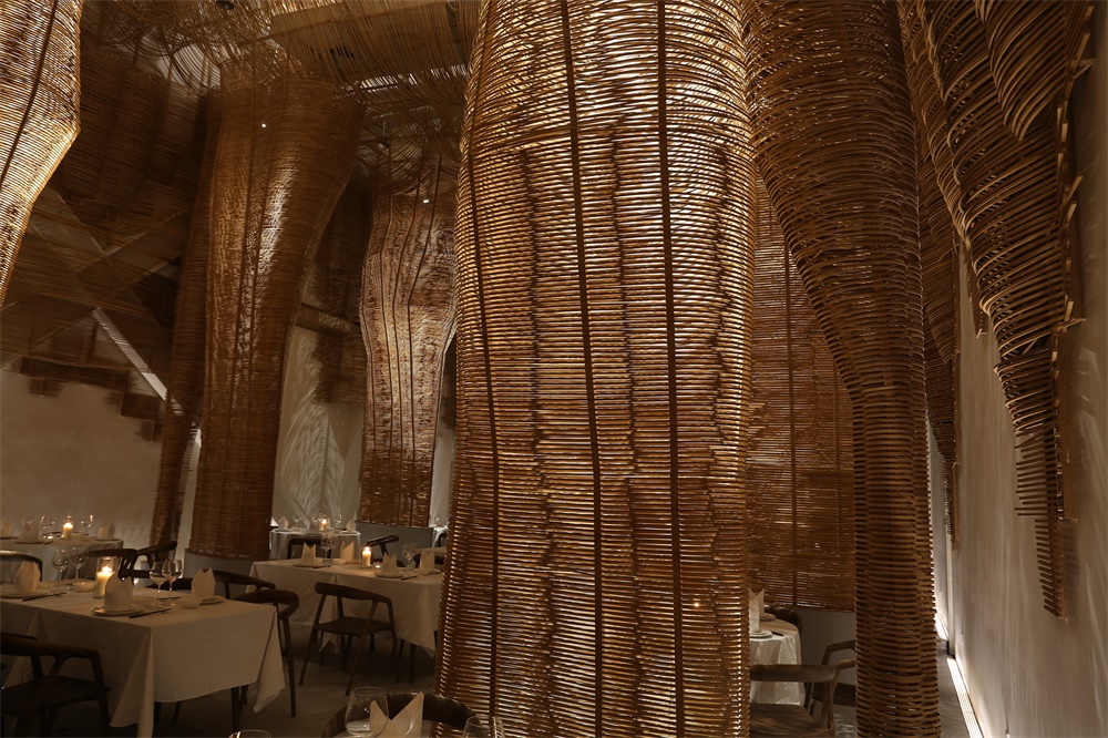 这是一次关于中国乡土手艺的空间营造体验:一种源于中国土地的“编作”行动,产生的一个有机的类似万物生长的视觉形态。空间设计公司所探讨的话题,是中国乡土社会过去最底层的手艺状态,是否能和一个“高级”的现代空间产生一种自然的对话和交融。