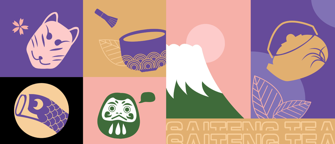 抹茶绿、樱粉、薄藤,加上鲤鱼旗、达摩等典型的日式元素,色彩丰富而又相互协调,塑造出浓郁的日式风格。