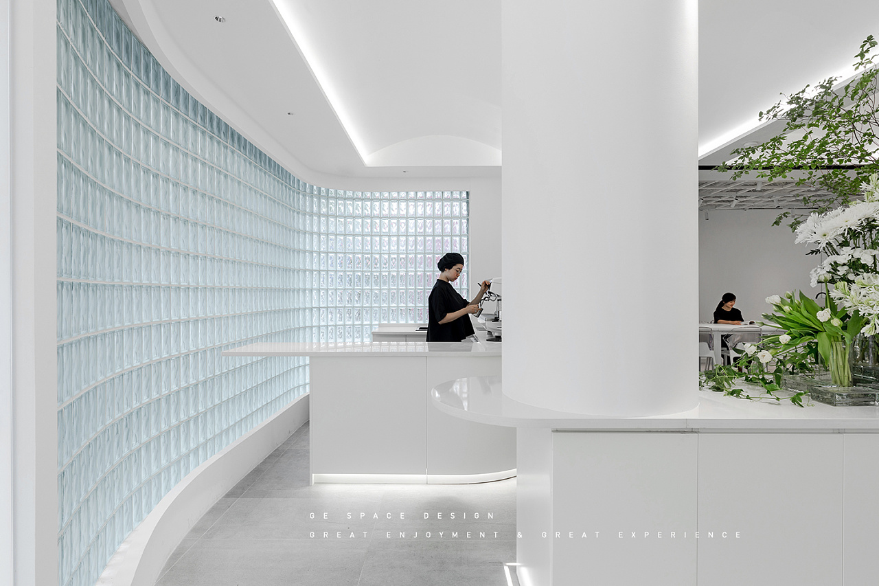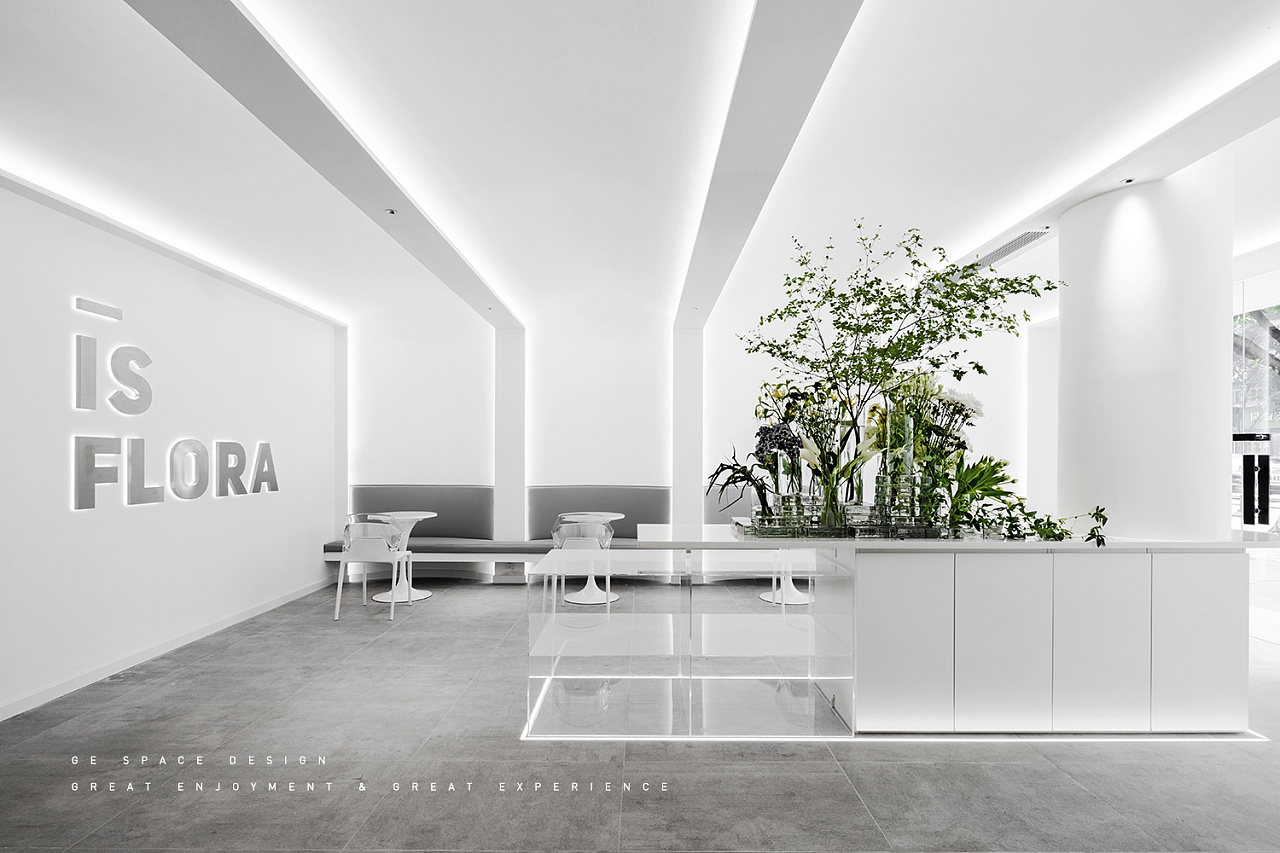 IS FLORA 位于成都高新区永丰路25号附1号,透明玻璃砖配合光影展现空间更多可能性,白色给予人们更多的感官体验帮助扩展人们对新事物的接纳,或许它可以称得是传统街道上的现代版