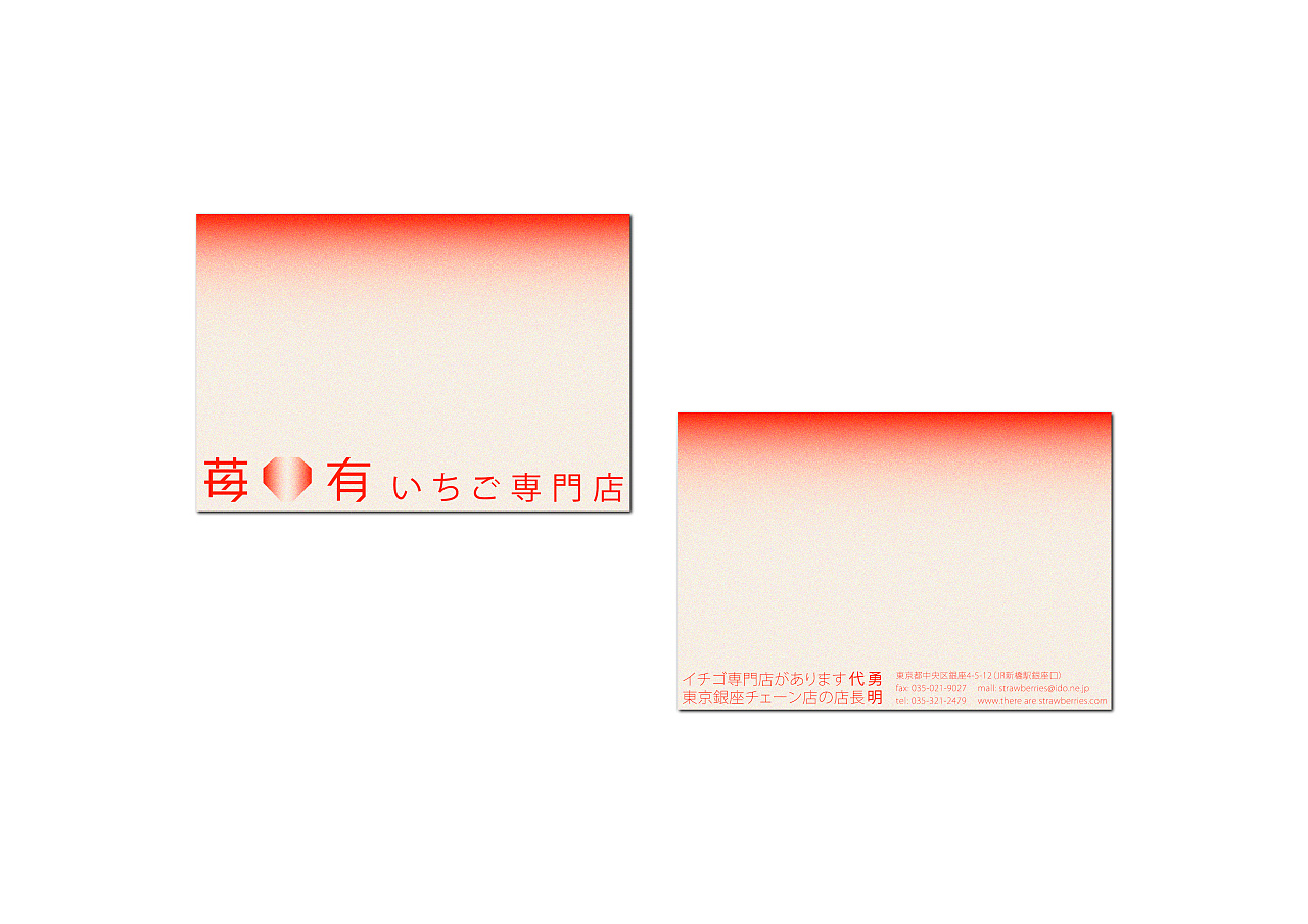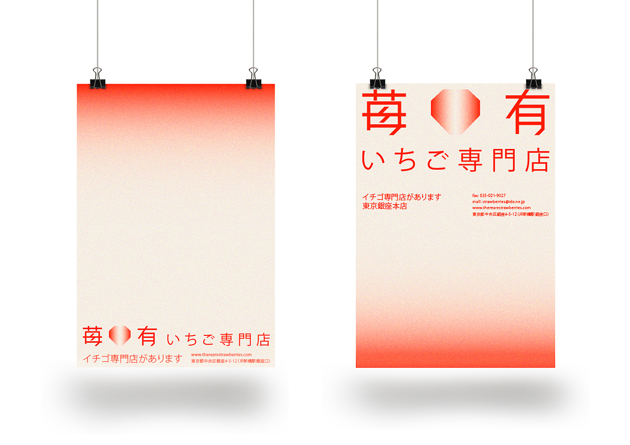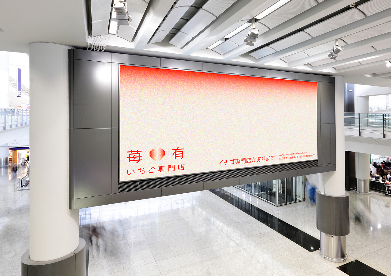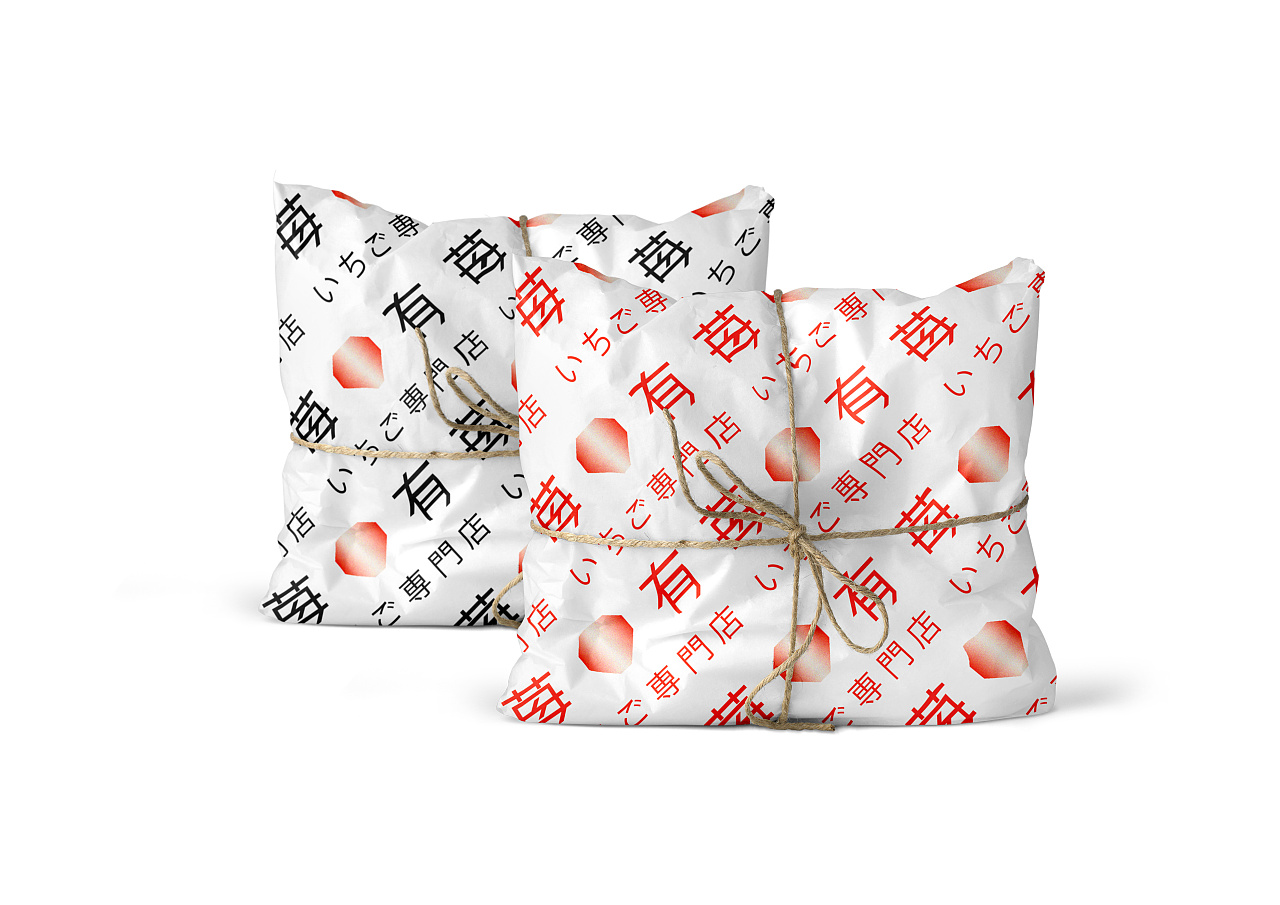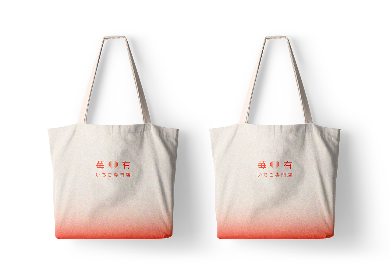 苺有いちご専門店品牌名字“莓有”,是“没有”的谐音,字面“莓”与“有”的结合却让人觉得有取之不尽的草莓,而不是听起来的“没有”,名字简洁并且富有趣味性。设计师利用草莓的外形与钻石的外形进行结合设计,体现出品牌的独特性与品牌的调性。