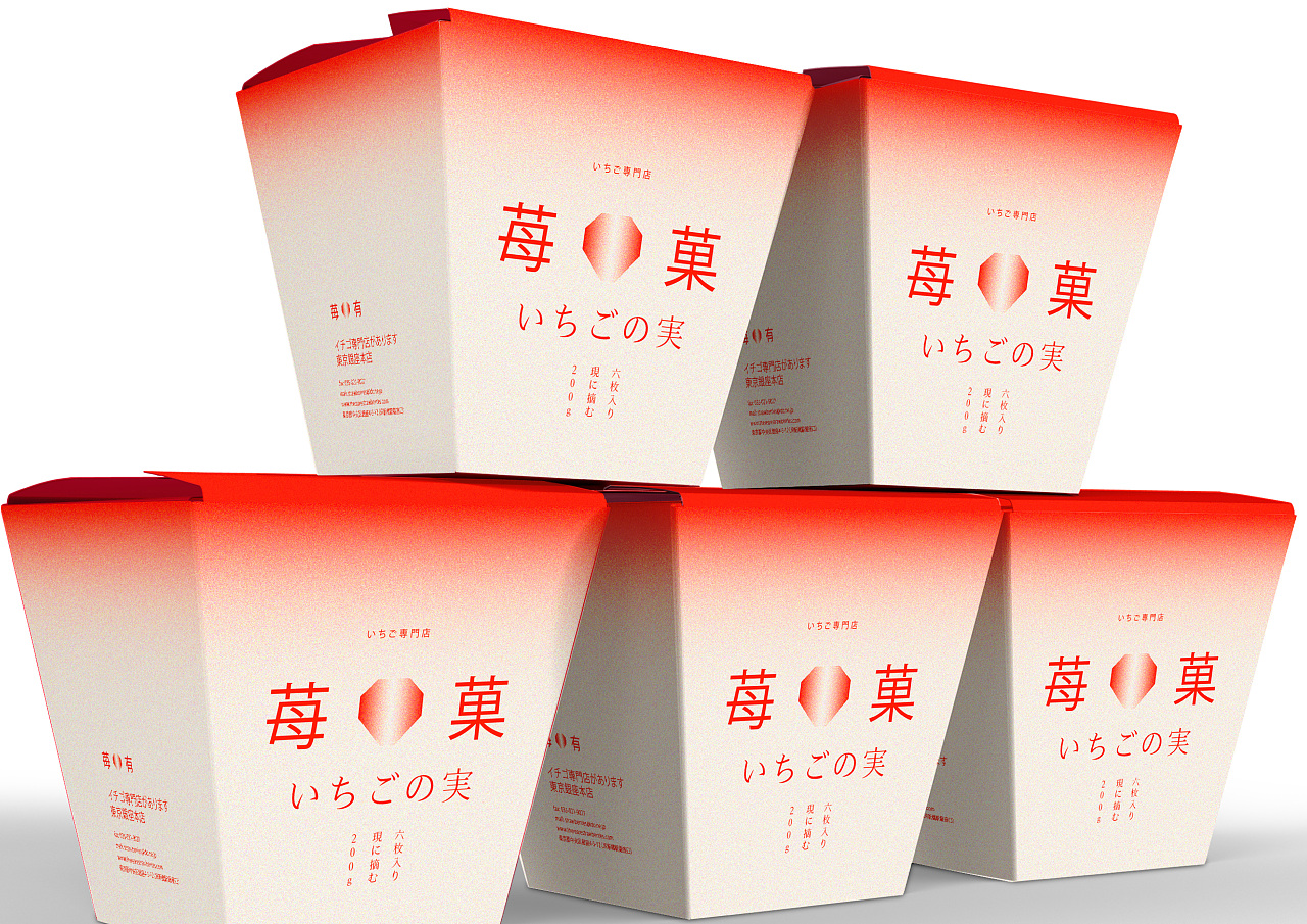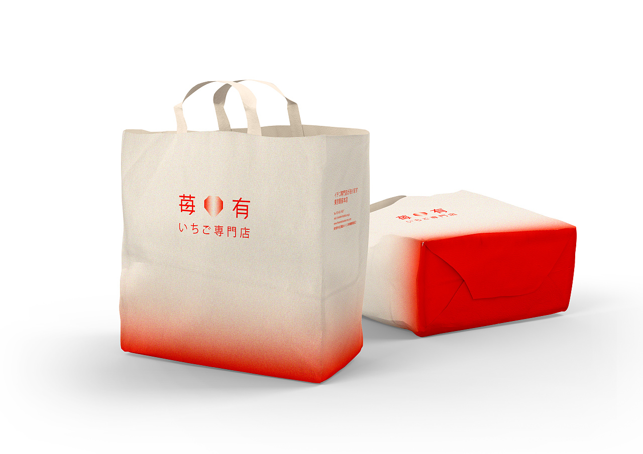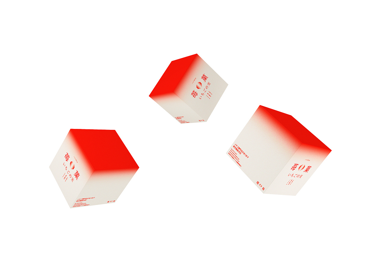 在色彩上品牌运用了草莓特有的渐变色系,并增添了细小的颗粒感,营造出磨砂的质感就像草莓原本的外表一样,还采用日系风格中独特的留白设计,简洁却不简单,让人一眼就能记住。