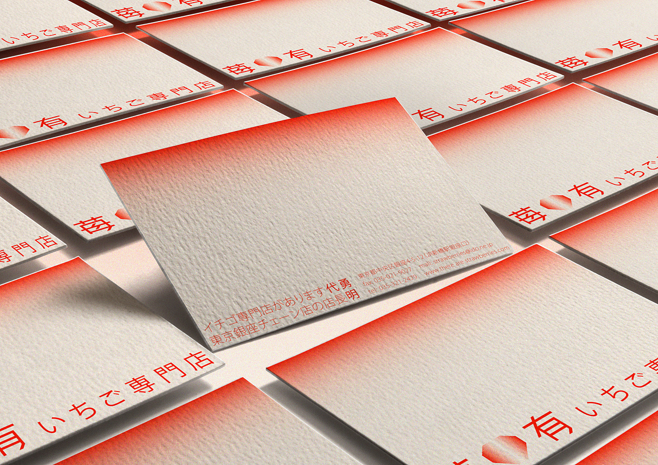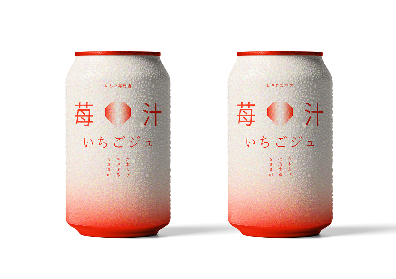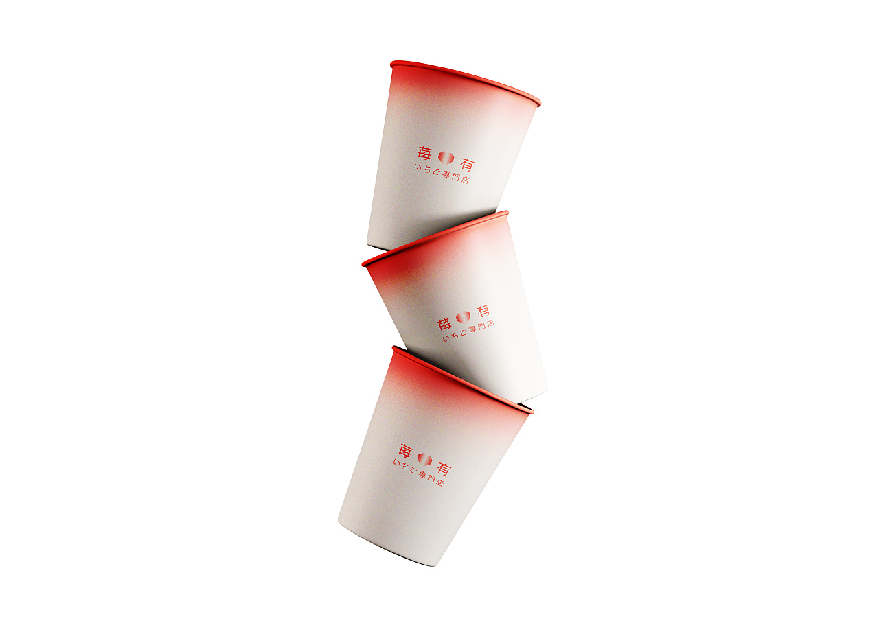 在色彩上品牌运用了草莓特有的渐变色系,并增添了细小的颗粒感,营造出磨砂的质感就像草莓原本的外表一样,还采用日系风格中独特的留白设计,简洁却不简单,让人一眼就能记住。