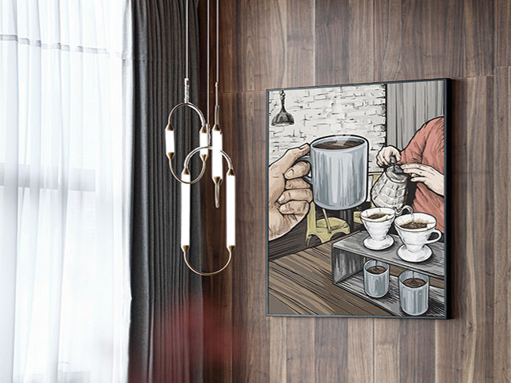 为了添补留白导致的空旷感,可以通过挂画和个性化灯饰来增添视觉层次。
