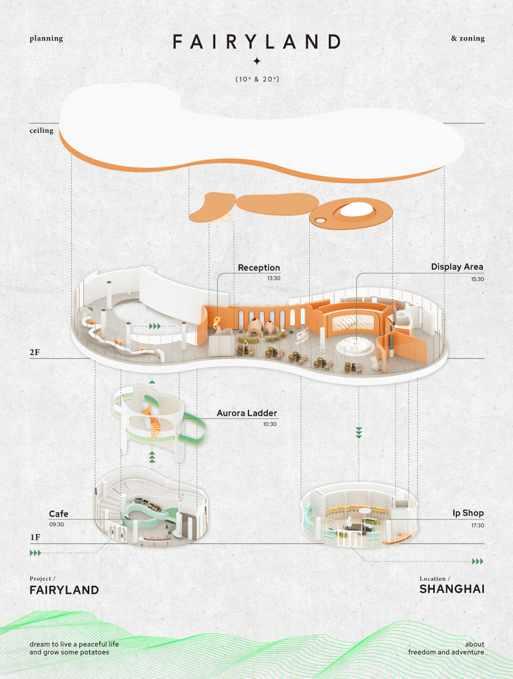 整个概念Fairyland由两层组成,一层是山谷的奇妙冒险,二层 是云端的漫游之家。