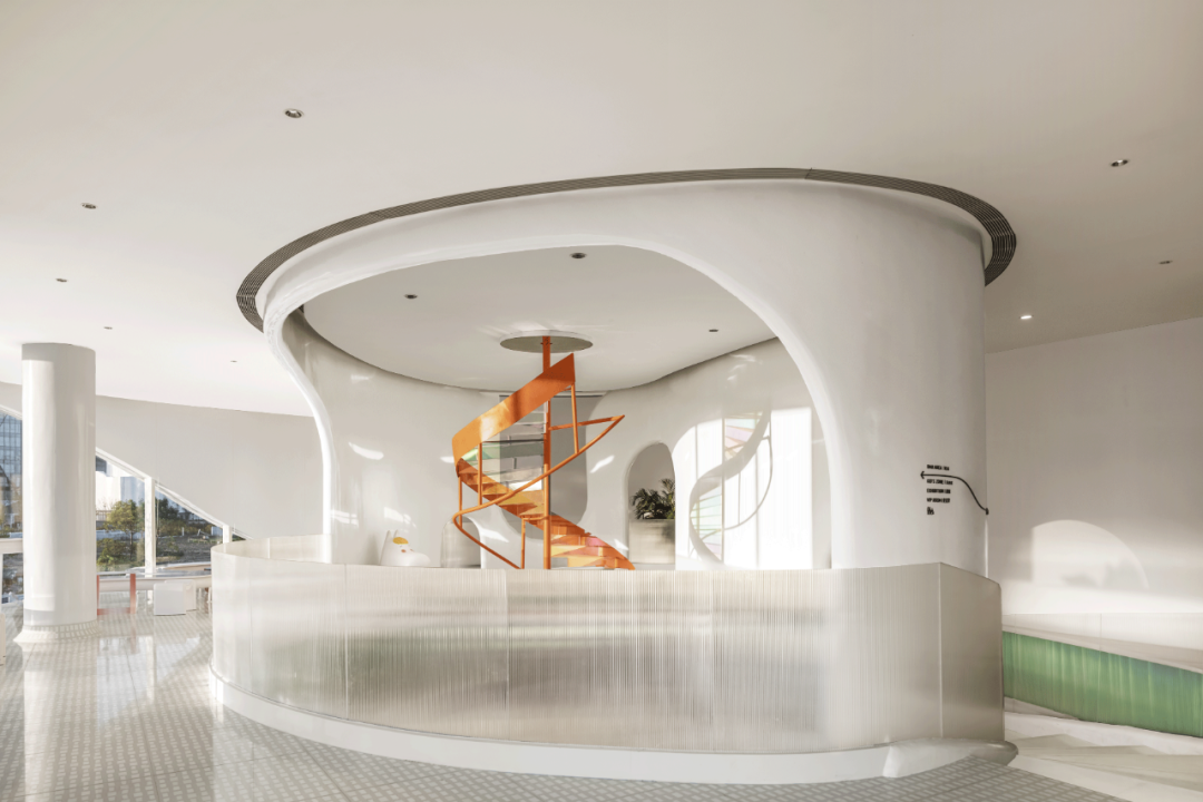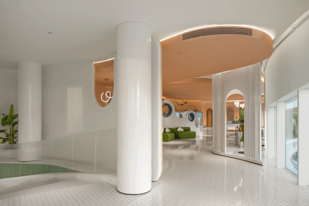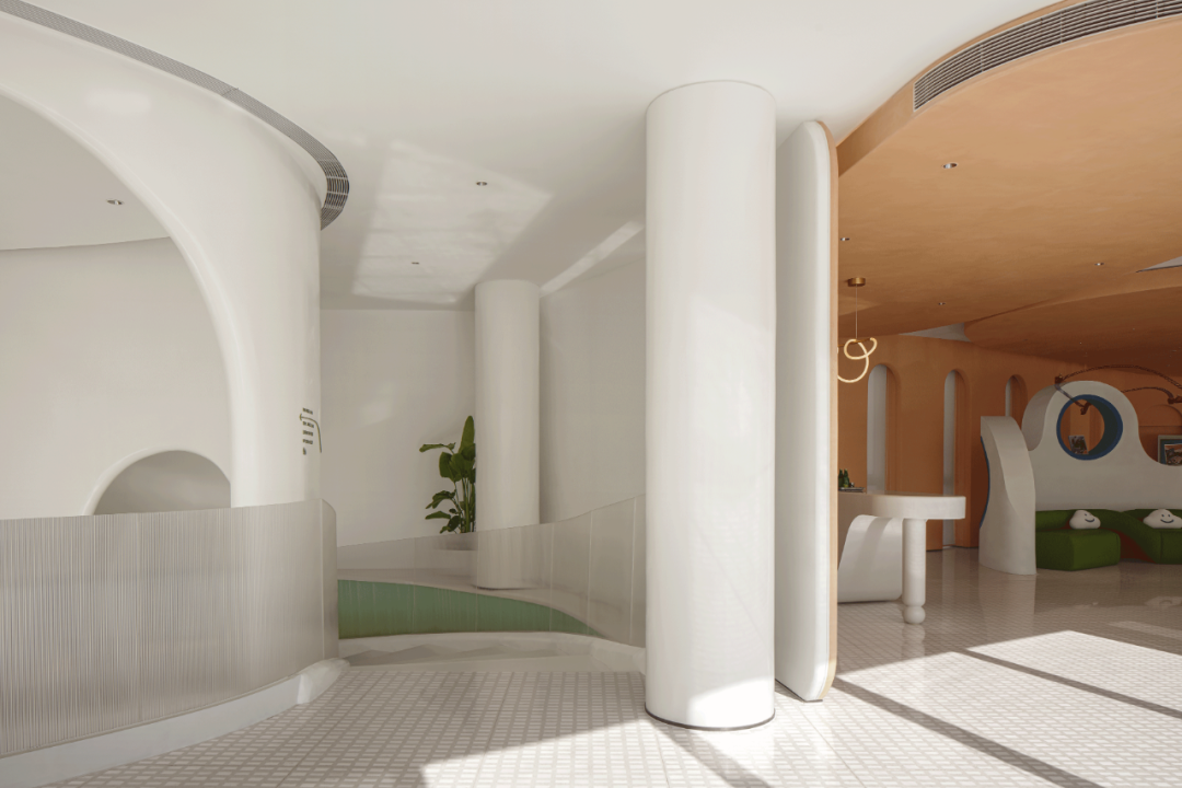蜿蜒的门洞打破了传统空间的布局,使得空间变得富有探索感。