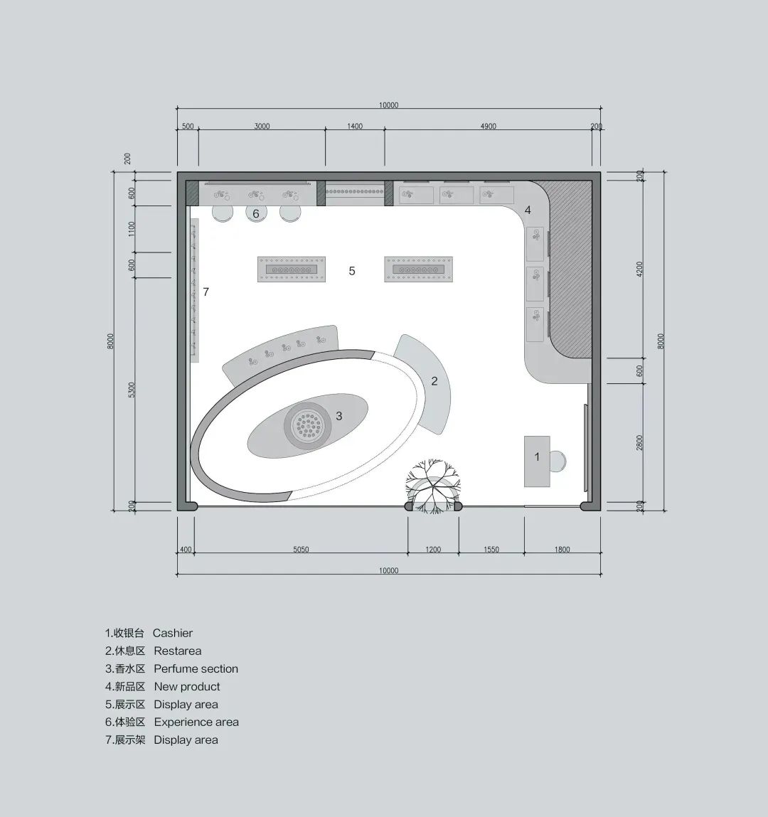 店铺采用偏女性化设计——弧线、圆的造型风格,